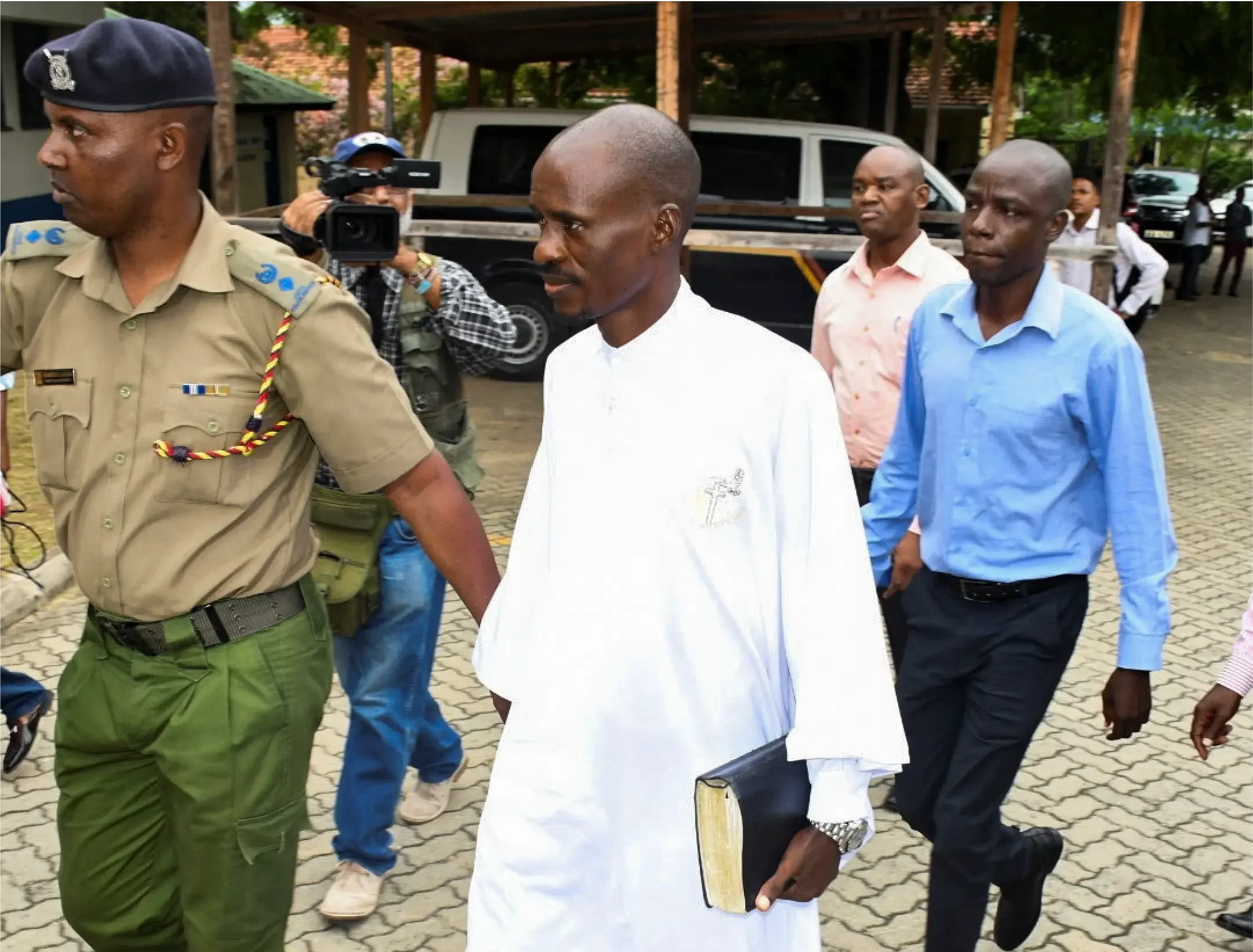The man of God is escorted by a small army of bodyguards to his state-of-the-art SUV which promptly whisks him away to his mansion in the leafy suburbs for a much deserved rest.